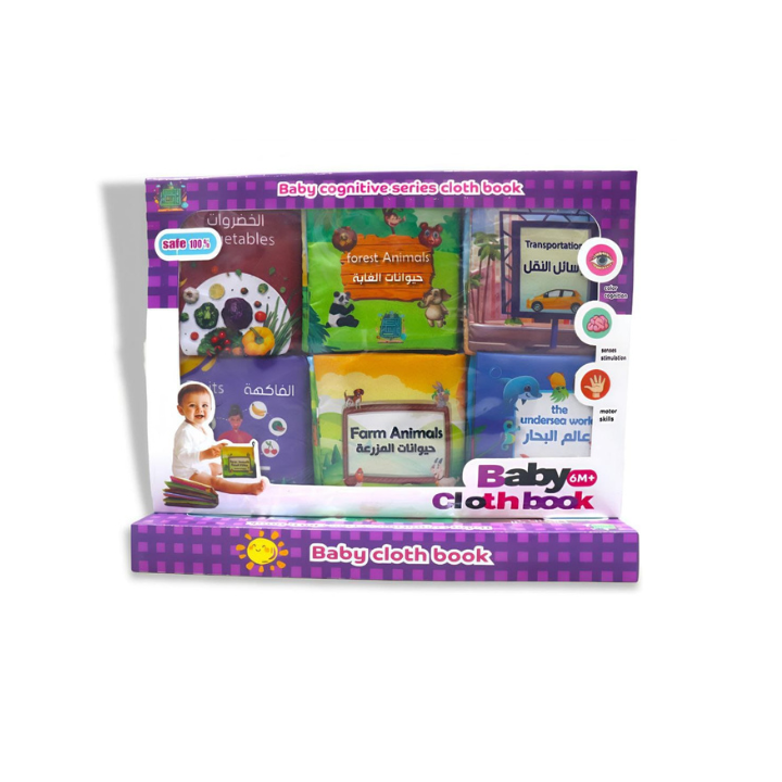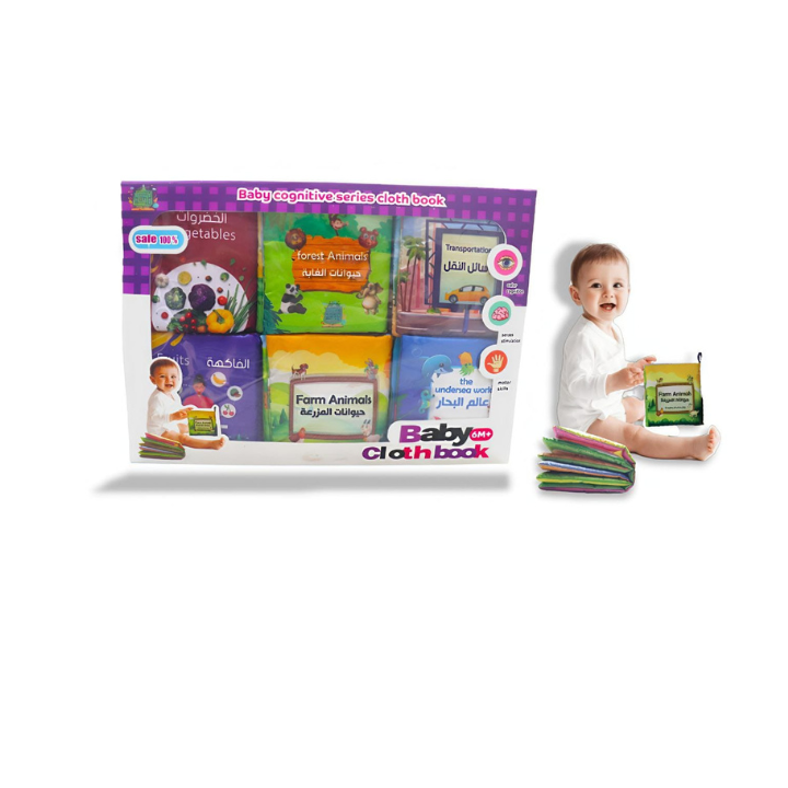 كتب قماش تعليمية للبيبي عربي وإنجليزي 6 كتب